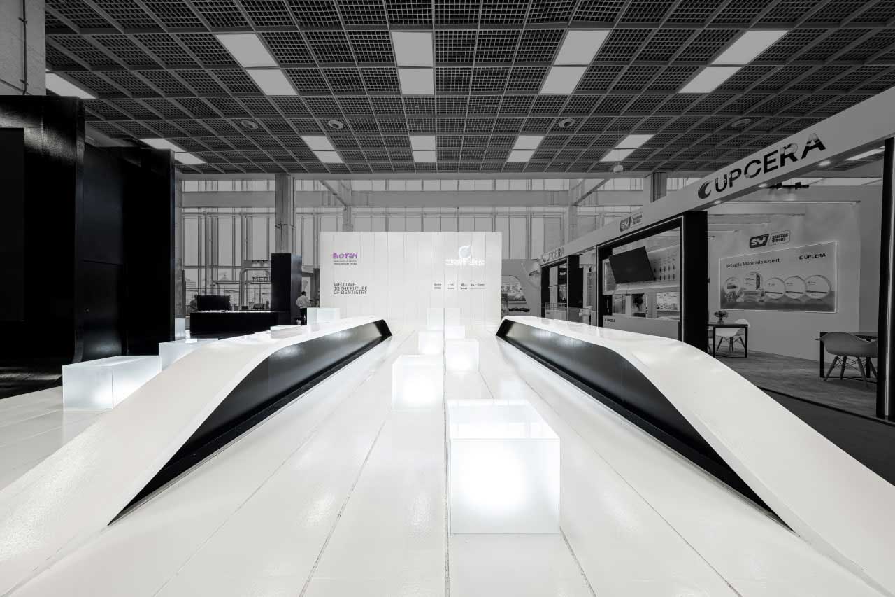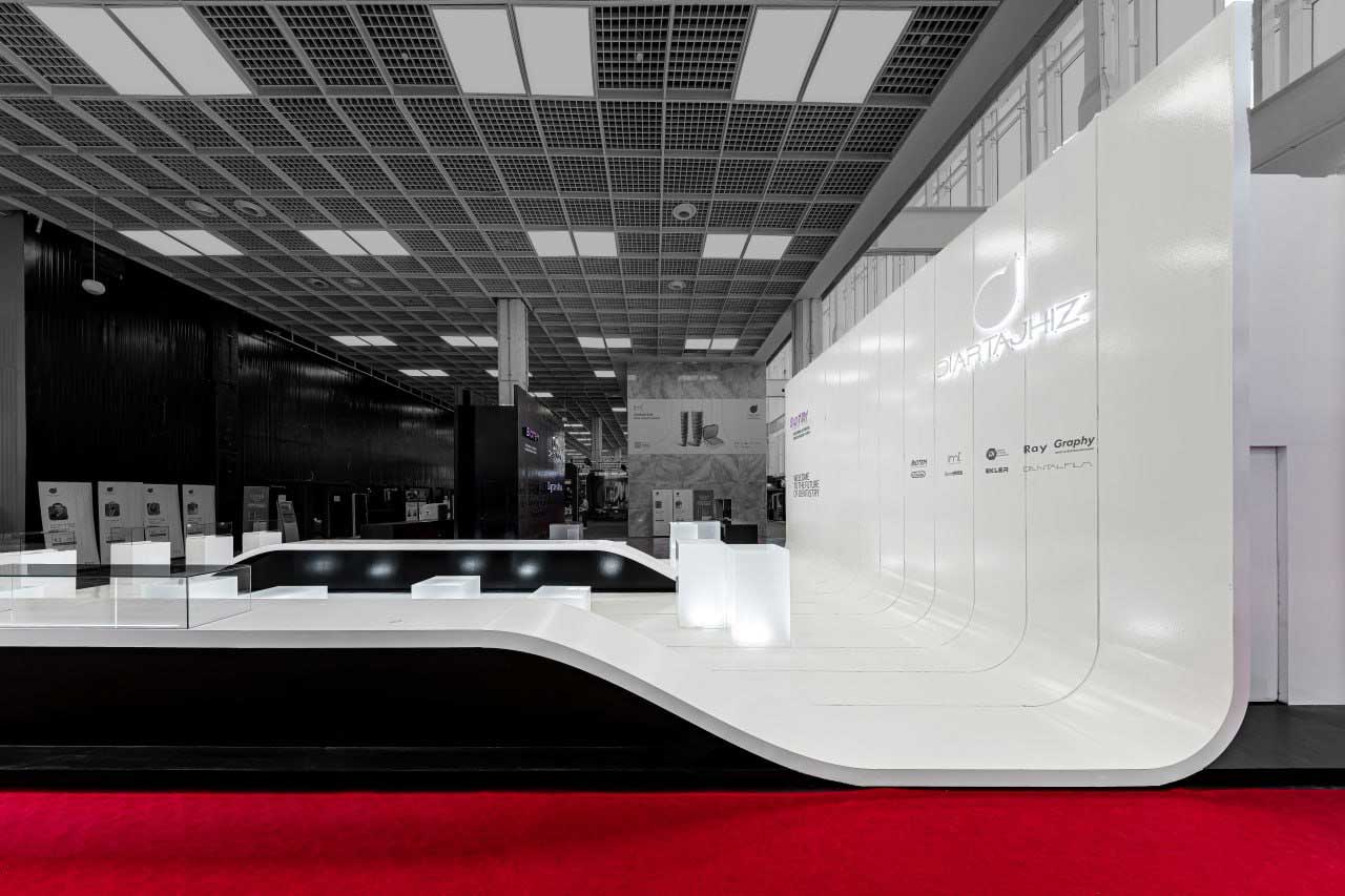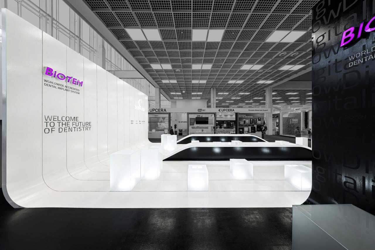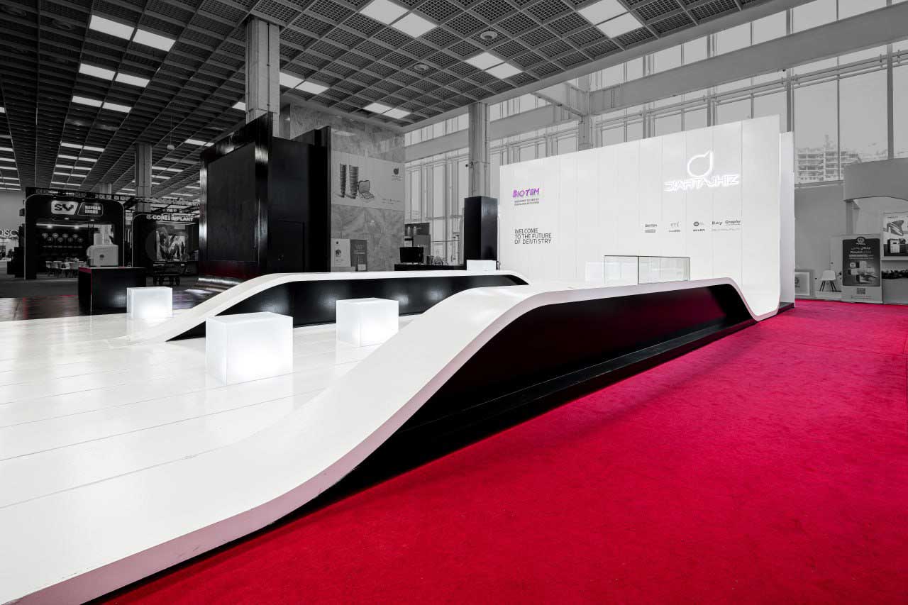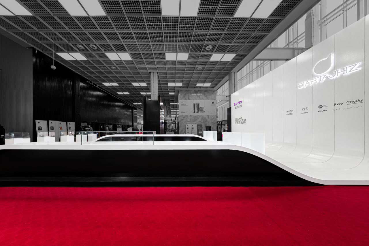 غرفهی نمایشگاهی ۲۰۳ مترمربعی در مرکز نمایشگاهی ایرانمال تهران برای یک شرکت باسابقه در حوزه تجهیزات دندانپزشکی طراحی شد؛ شرکتی که اهداف اصلی آن در این پروژه هم افزایش آگاهی از برند و هم بیشینهسازی فروش بود. چالش اصلی طراحی خلق فضایی بود که نهتنها بازدیدکنندگان را جذب کند، بلکه بستری برای گفتوگو و در نهایت عقد قرارداد نیز فراهم آورد.