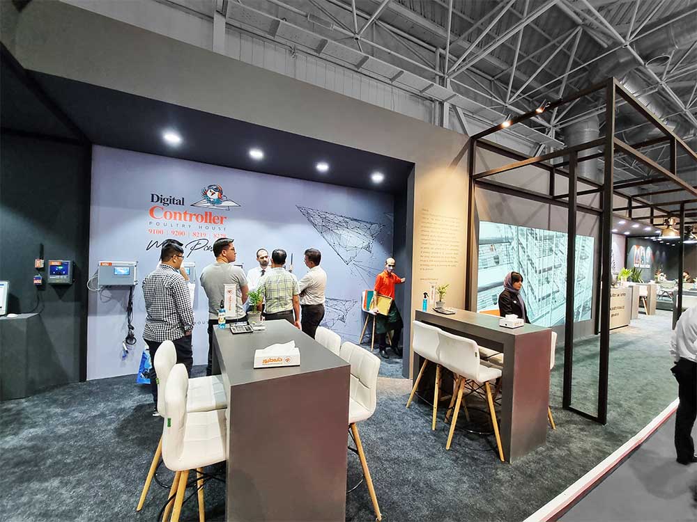 غرفه خانه طیور 1401 : همواره نمایش محصول در فضایی مرتبط با محصول از چالش های طراحان غرفه بوده است. چرا که قرارگیری محصولات در فضایی شبیه و تا حدی نزدیک به واقعیت، گاهی در درک بهتر و درست تر محصول توسط بازدیدکنندگان بسیار کمک می کند. از آنجا که محصولات شرکت خانه طیور، محصولاتی صنعتی و مرتبط با فضاهای کاملا کاربردی و بدون جزییات می باشند، بنابر این سعی شده با بکارگیری حداکثری پروفیل های آهنی و طراحی مجموعه ای پیوسته، فضایی صنعتی و در عین حال جذاب طراحی شود.